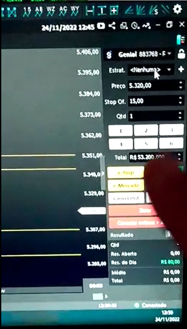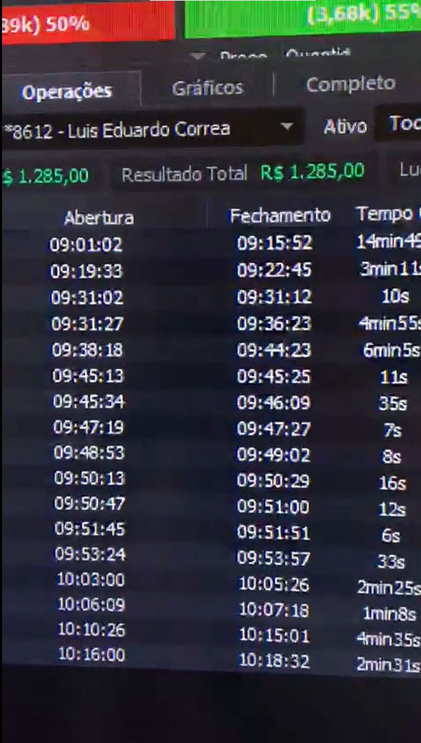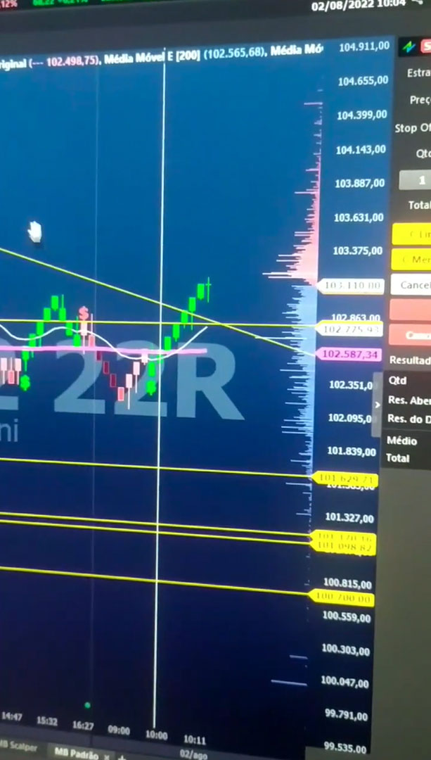 Leitura direta do fluxo e Times & Trades, analisando agressões e absorções em tempo real.